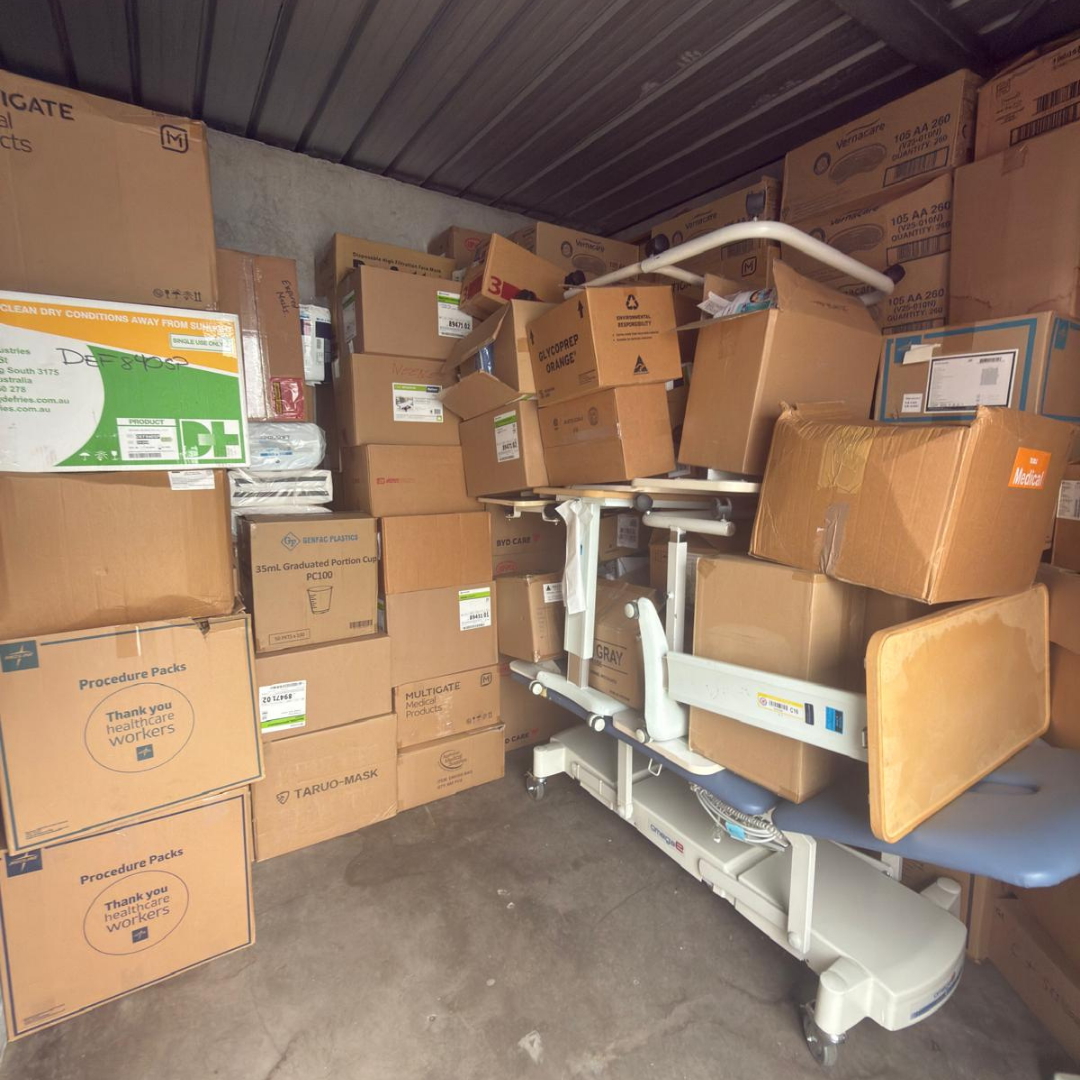 We have been collecting decommissioned medical equipment and consumables. Everything from beds to facemasks that are no longer needed here but are still incredibly valuable at our hospital and with our outreach teams. And last week, it became very real, very physical work.